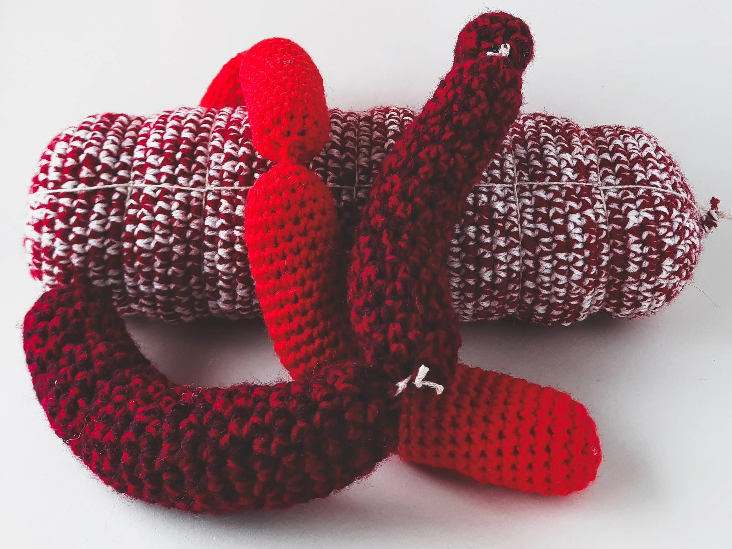 Yarn | Assorted 8-ply acrylic, double-stranded when I wanted two colours to come through