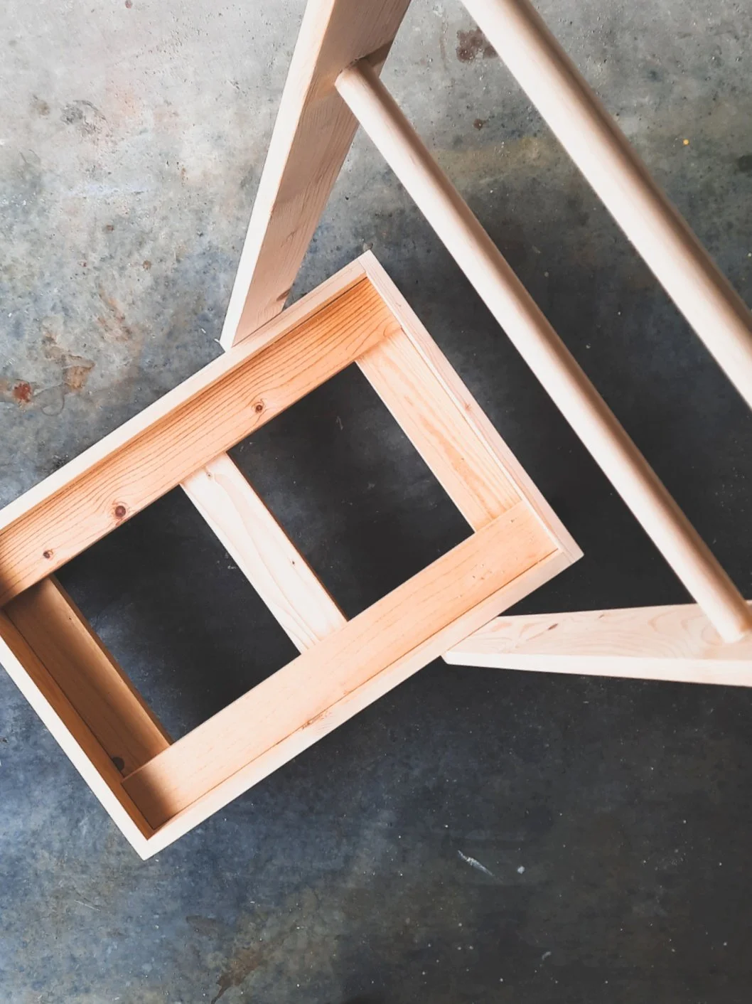 I had a bunch of timber bed slats at the ready (from the side of the road, of course) which I could fashion into a frame. An off-cut of plywood, a length of dowel and a set of castors, all of which I already had, meant I was ready to go.